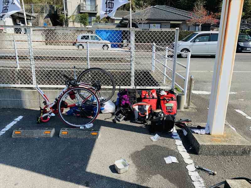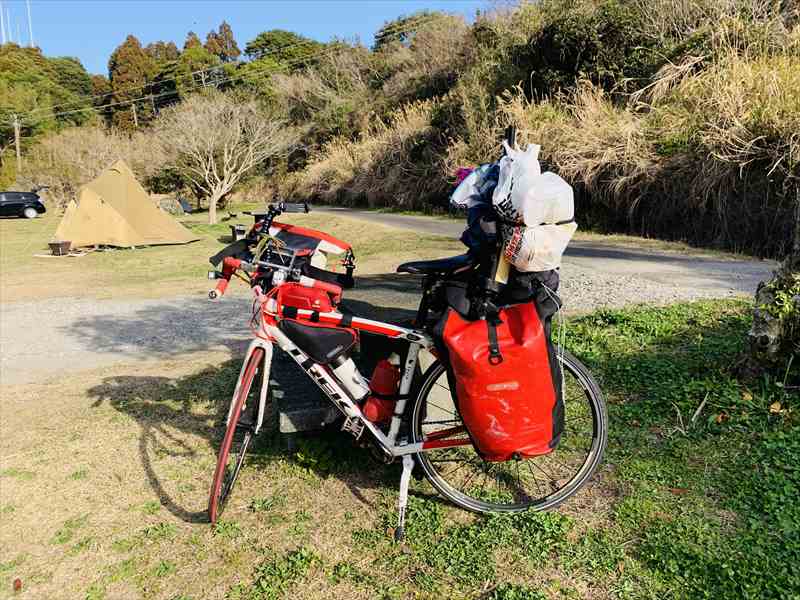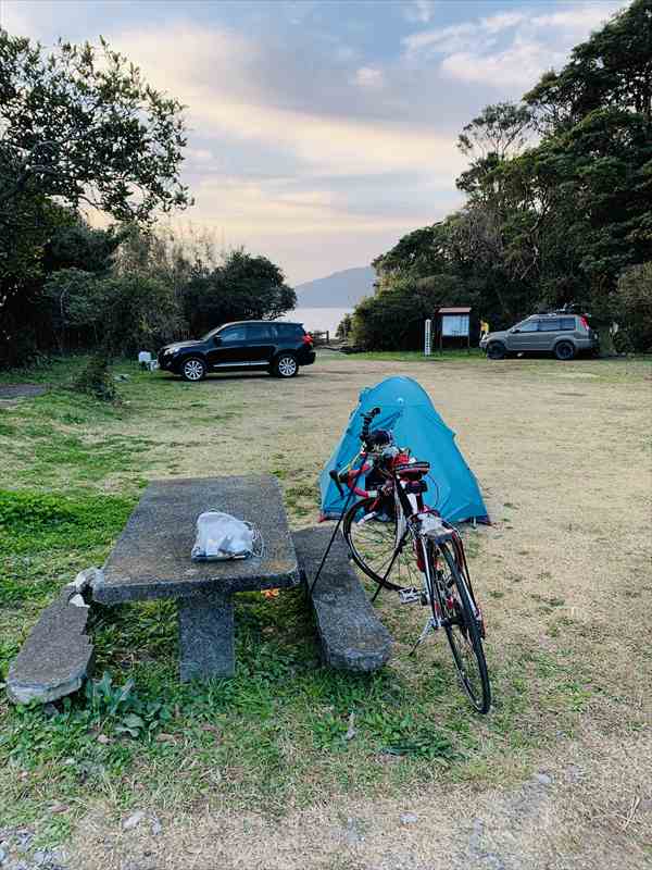 猪崎鼻キャンプ場を出発。ん?2月だよなぁ。昨日からずっと半袖Tシャツのまま。今日も暑くなりそう?って、2月だよなぁ、と再び自問自答。 走り出してすぐにパンク。昨日も一度パンクしていて、尖った石にタイヤも一緒に破れてしまったようだ。チューブの予備がなくなってしまったので、10kmほど押してコメリ(ホームセンター)でパンク修理パッチを買ってチューブを修理。タイヤも予備の新品に交換。 3時間ほど時間ロス。志布志まで行く予定だったけど、目的地を都井岬に変更。海岸線を走っていると、「この先通行止め」の表示。聞くと、崖崩れで通行止め。歩いても通れないとのことで、戻って山越えの迂回路に。 しんどい迂回路だったが、峠を越えた後は、幸島を臨むきれいな砂浜。 再び、都井岬を目指す。とにかく海がきれい。アップダウンがきつく、体力もかなり消耗。すると、野生の馬が出迎えてくれた。 日が暮れてしまったので、今日駐車場の端をお借りして一泊。ちなみに、この時期キャンプツーリングの服装は、ユニクロの一番厚いヒーテックのようなインナーを上下に、厚めのシャツ。そして、風よけにゴアテックス素材のモンベルのジャケット。冷え込む早朝はネックウォーマー、耳当てと毛糸の手袋。テントでは、空気層の厚いシュラフマット、ダウンのシュラフにアルミのシュラフカバー、薄手のシーツ。さらに、しっかり着込んで、二の腕と太ももには小さいホカロンを張り付けて就寝する。4月末の東北弘前、北海道松前のさくら撮影の際も、ほぼ同様の装備だ。なのに、22日、23日、24日の3日間は夜も冷え込むことなく、日中はTシャツ1枚で十分。南風だったので全国的に暖かかったようだ。 | ||