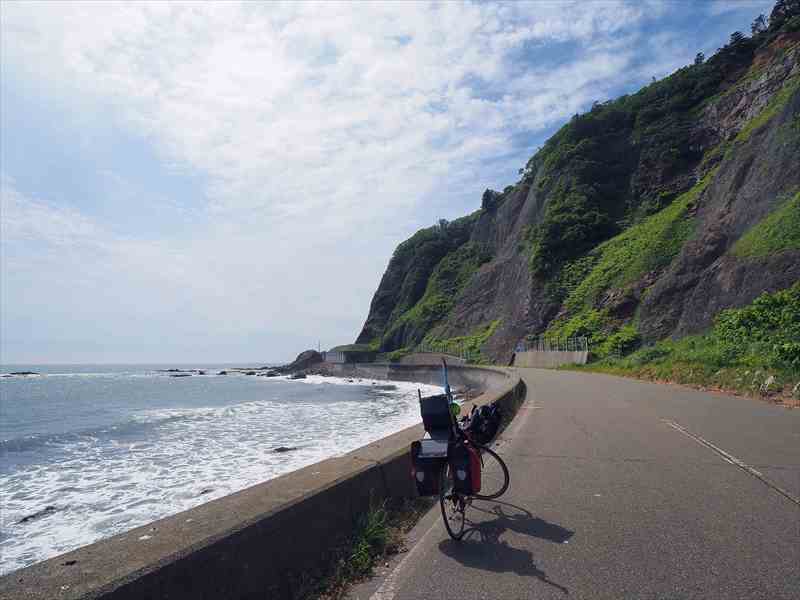 日高線さえ走っていれば、もうこのコースは間違いなく5点満点のコースだ。襟裳岬周辺は歌にあるように、春でなくても何もないが、太平洋を臨む大自然がある。 襟裳岬の散策をゆっくり楽しんだあとは、襟裳岬観光センターの食堂で昼食。テレビなどでも紹介されているが、何を食べても美味しくてボリュームがある。 岬から様似までは、オーバーハング気味の絶壁の下を潮風を受けて気持ちよく走ることができる。 日高線さえ走っていれば、疲れても列車で切り上げることができるのだが廃線が悔やまれる。 | ||