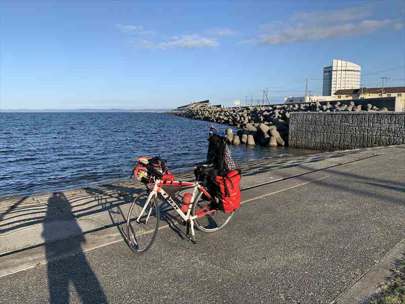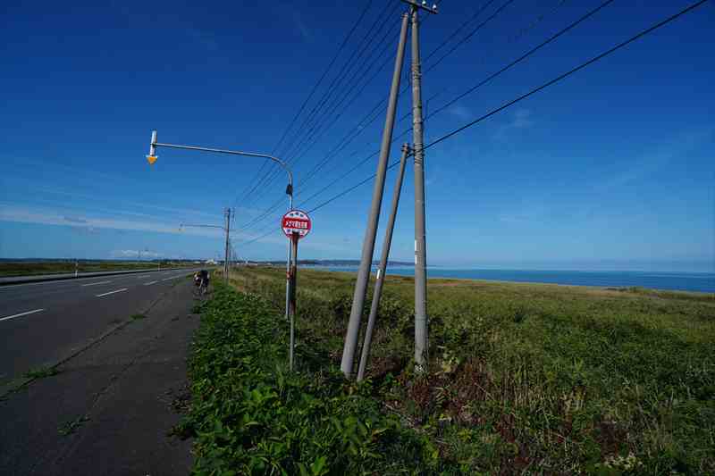 ノサップ岬までの宗谷サンセットロードは、ところどころで鹿の親子がのんびりと草をつばむ。出来るだけ脅かさないようにソロソロと走り抜ける。いつもはにぎやかなやノサップ岬や北防波堤ドームだか、コロナ禍で閑散としていた。宗谷岬までは広くて平坦な道が続き、爽やかな北の海風を切って気持ちよくサイクリングできる。 | ||